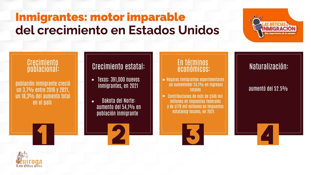 Texas lideró el crecimiento estatal con la adición de 391,000 nuevos inmigrantes en 2021. También se resaltan las estadísticas en Dakota del Norte, estado que experimentó un aumento del 54,1% en su población inmigrante.